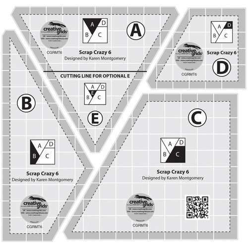 Creative Grids Scrap Crazy 6 Templates Quilt Ruler 4pc Set - CGRMT6