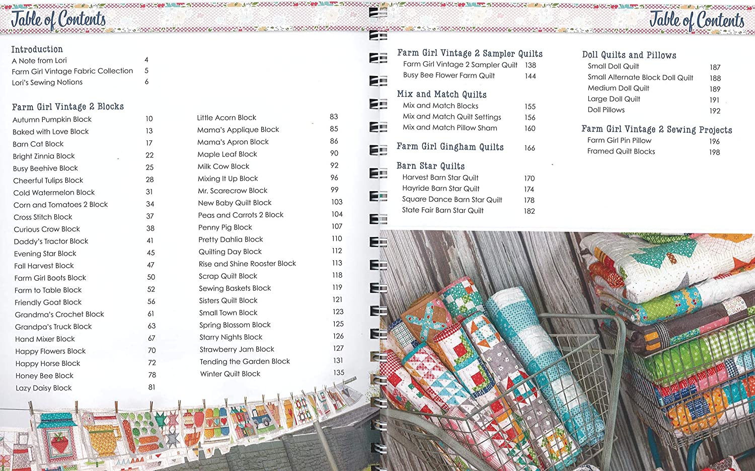 It's Sew Emma Farm Girl Vintage 2 Book- Mix and match, you can do it all! These 45 farm girl block designs include rooster, tractor, horse, apron, scarecrow, and more. Each design has instructions for creating it in 6" or 12" blocks, it's so versatile. make the sampler quilt and use up your scraps. Take any of those blocks and make quilts, pin cushions, pillows, and more. 201 pages in a spiral bound soft cover.