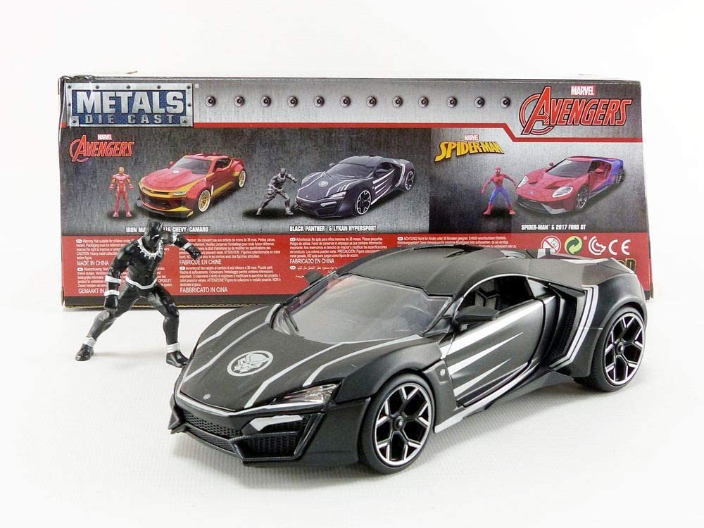 Marvel Black Panther & Lykan Hypersport Die-cast Car, 1:24 ScaleVehicle & 2.75 Collectible Figurine