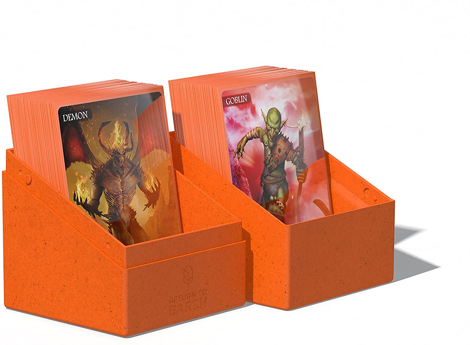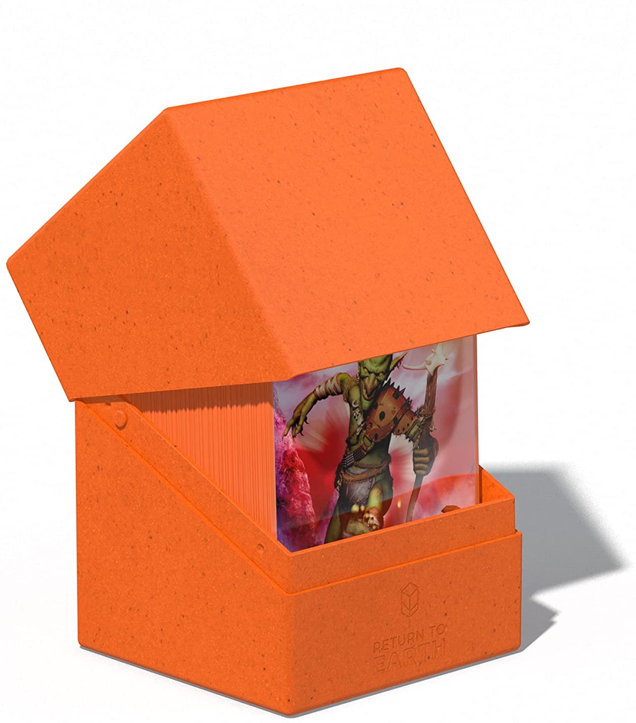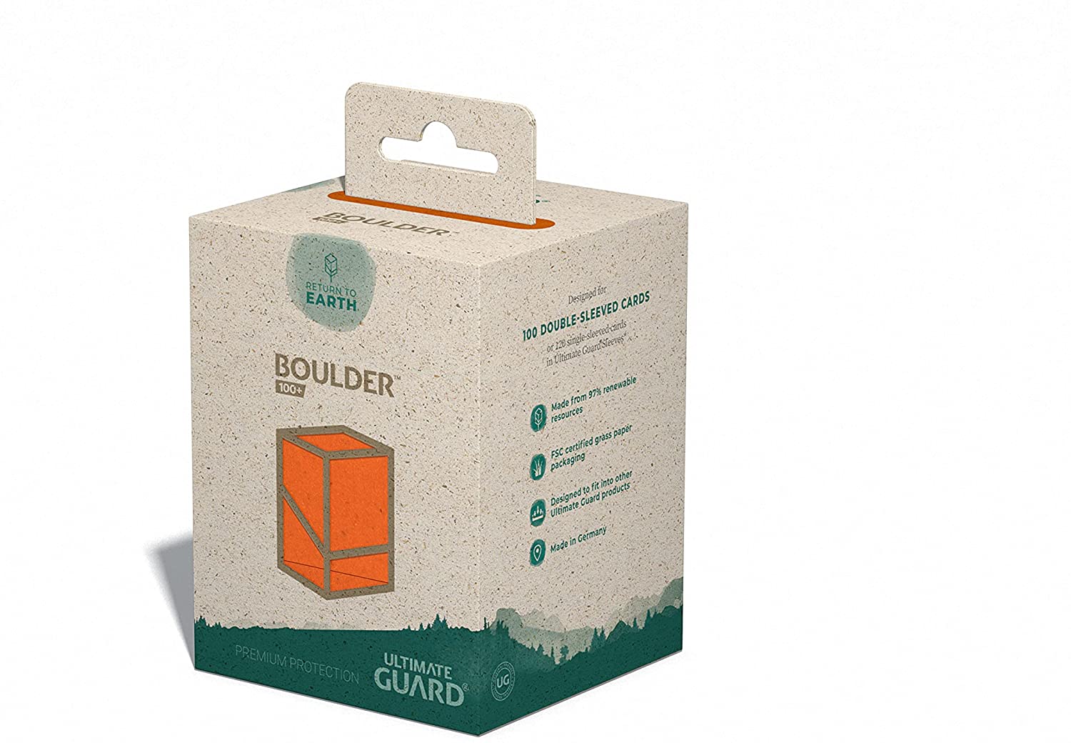 We at Ultimate Guard have carefully considered our ecological responsibilities. Our commitment to protecting the environment includes the use of new materials and the creation of new products with an additional focus on sustainability. Developed and produced in Germany, this handy and solid Boulder 100+ with super-easy opening consists of 97% renewable resources, with a FSC certified grass paper packaging. The deck case is recyclable and holds up to 100 double-sleeved or 120 single-sleeved cards when using Ultimate Guard Sleeves. With the purchase of this Return to Earth product you directly support global reforestation. Visit returnto.earth to learn more about our approach to supporting the planet. - Designed for 100 double-sleeved or 120 single-sleeved standard sized cards in Ultimate Guard Sleeves - Durable and rigid box - Secure closure - 97% renewal resources - Designed to fit into other Ultimate Guard products: Superhive 550+, Arkhive 400+, Flip'n'Tray 100+, Twin Flip'n'Tray 200+ Technical data: Dimensions approx.: 76 x 75 x 98,5 mm Interior dimensions approx.: 69,1 x 68,1 x 92,8 mm